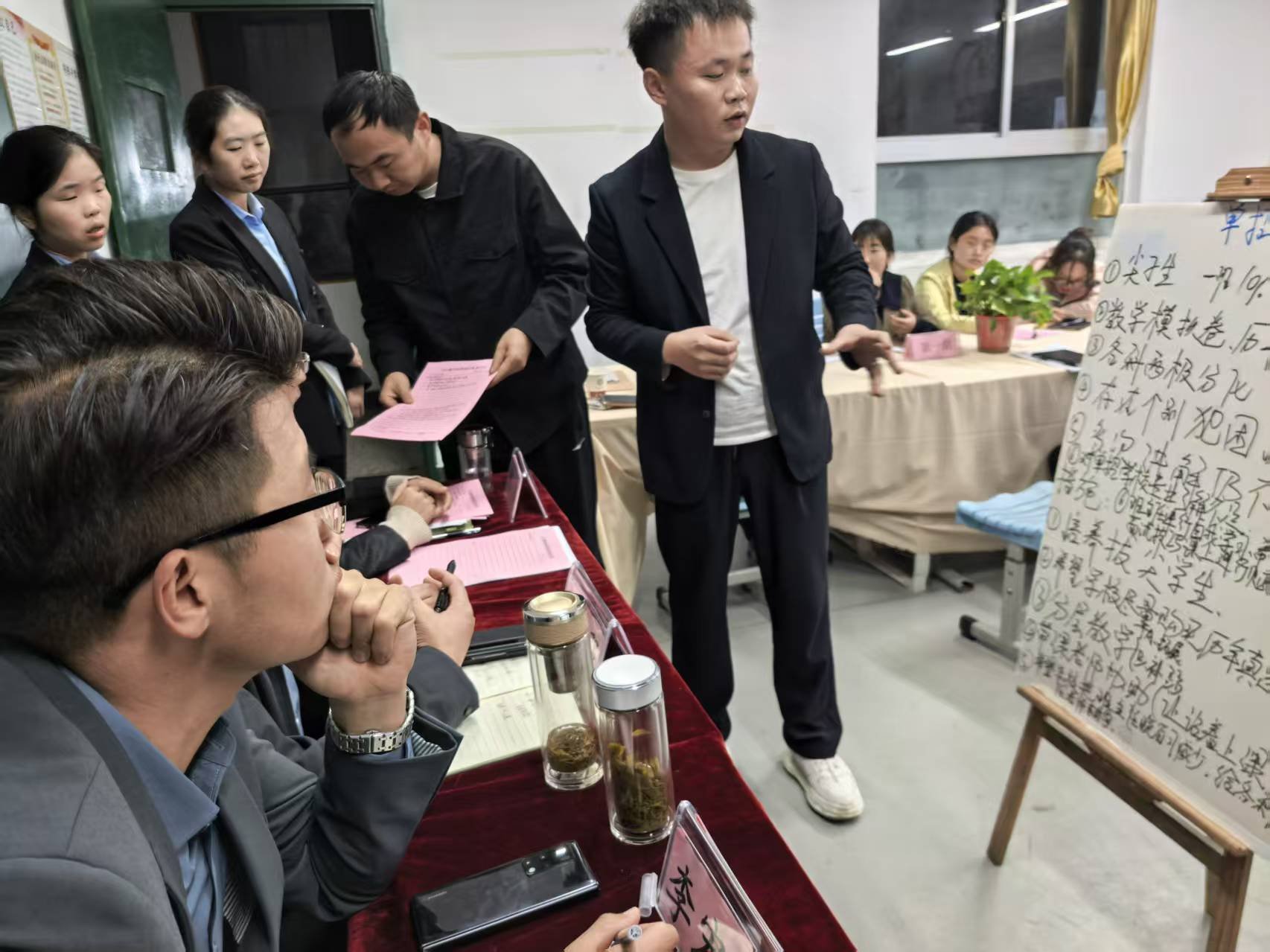 在深入交流中,老师们系统剖析了每位学生的个性特点与发展潜力,通过优弱搭配组建学习互助小组,既为学有余力的学生提供拓展挑战,也帮助基础薄弱的学生夯实基础。研讨方案还细化了班规执行、作业设计和后进生帮扶等日常教学环节,为后续精准教学干预提供了清晰依据和坚实基础。